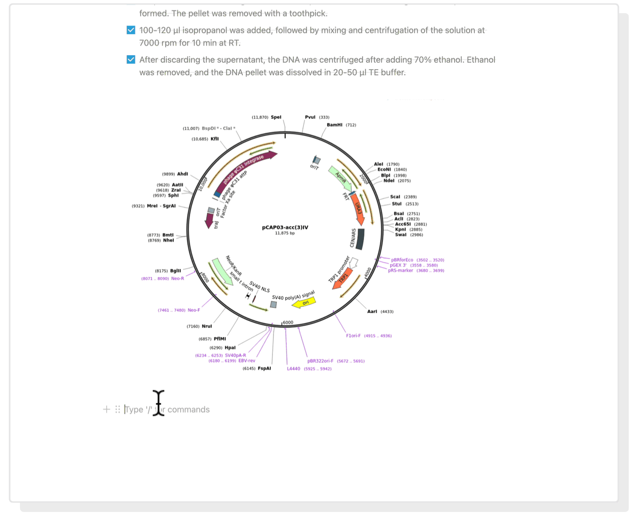 Pretty much everything that you can do on your paper lab notebook you can also do in Notion.