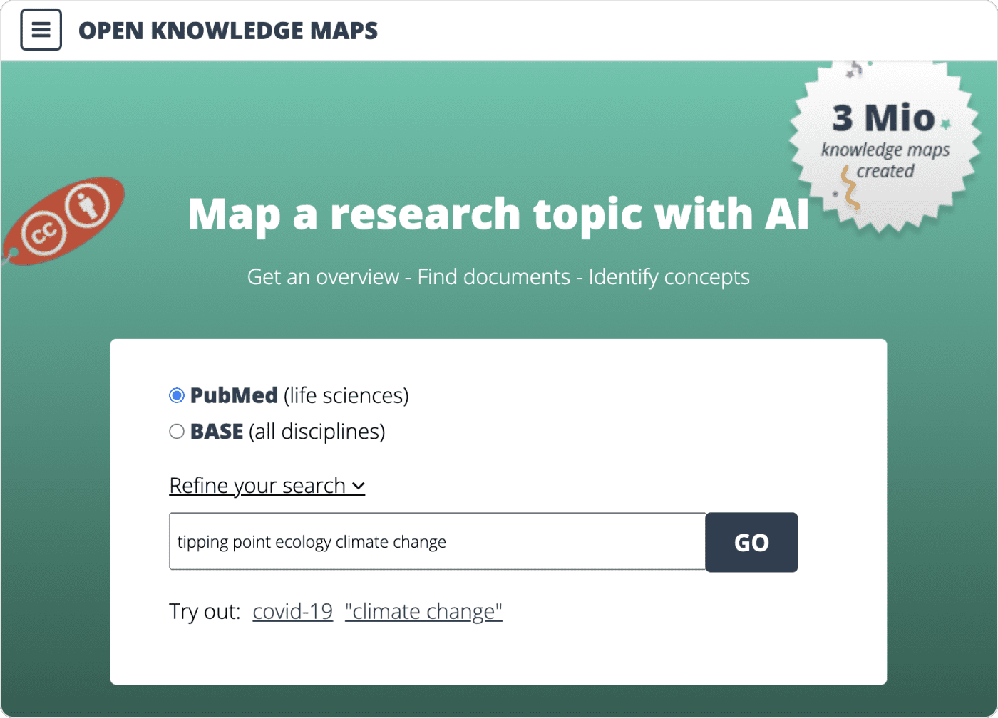 Open Knowledge Maps generates its maps using PubMed and BASE. As a non-profit organization built with open-source software, it champions open science principles and emphasizes open-access data sources.