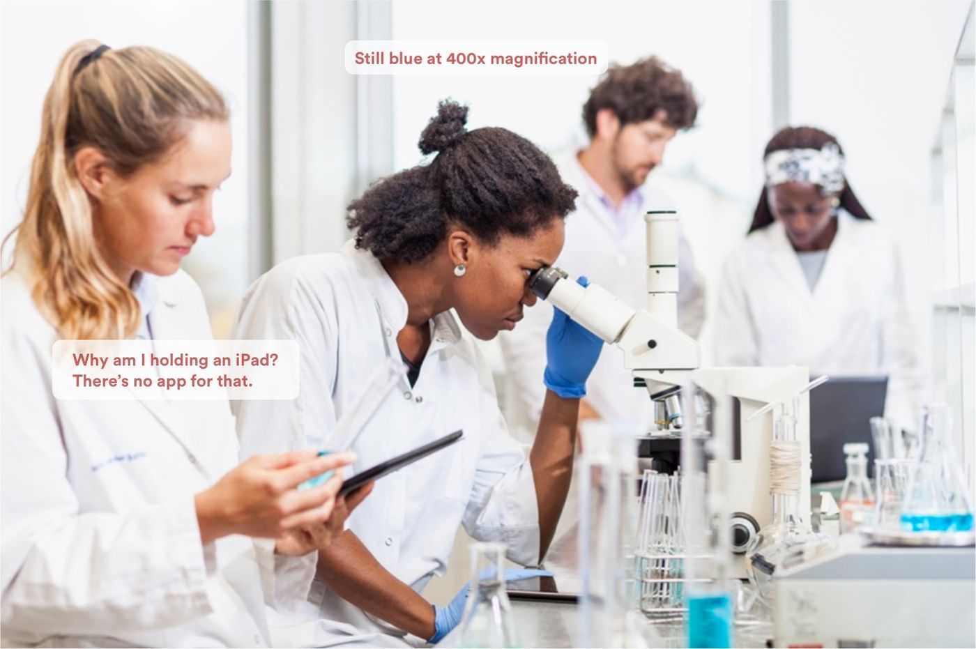 We’ve worked for quite some time on this post (it takes time to make scientists spin in 3D …). So we were indeed surprised as we saw the very same topic trending on Twitter under hashtag #BadStockPhotosOfMyJob right before we hit the “publish” button on this post.
