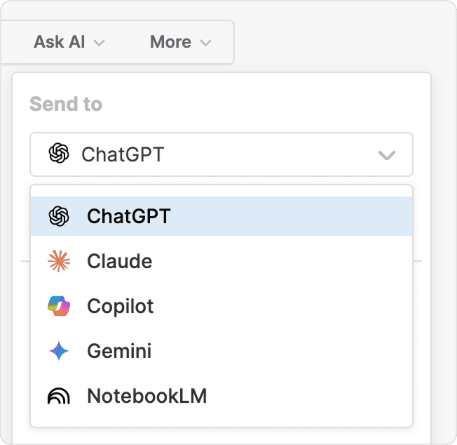 - Select your preferred AI assistant from the dropdown (ChatGPT, Claude, Gemini, Copilot, or NotebookLM).