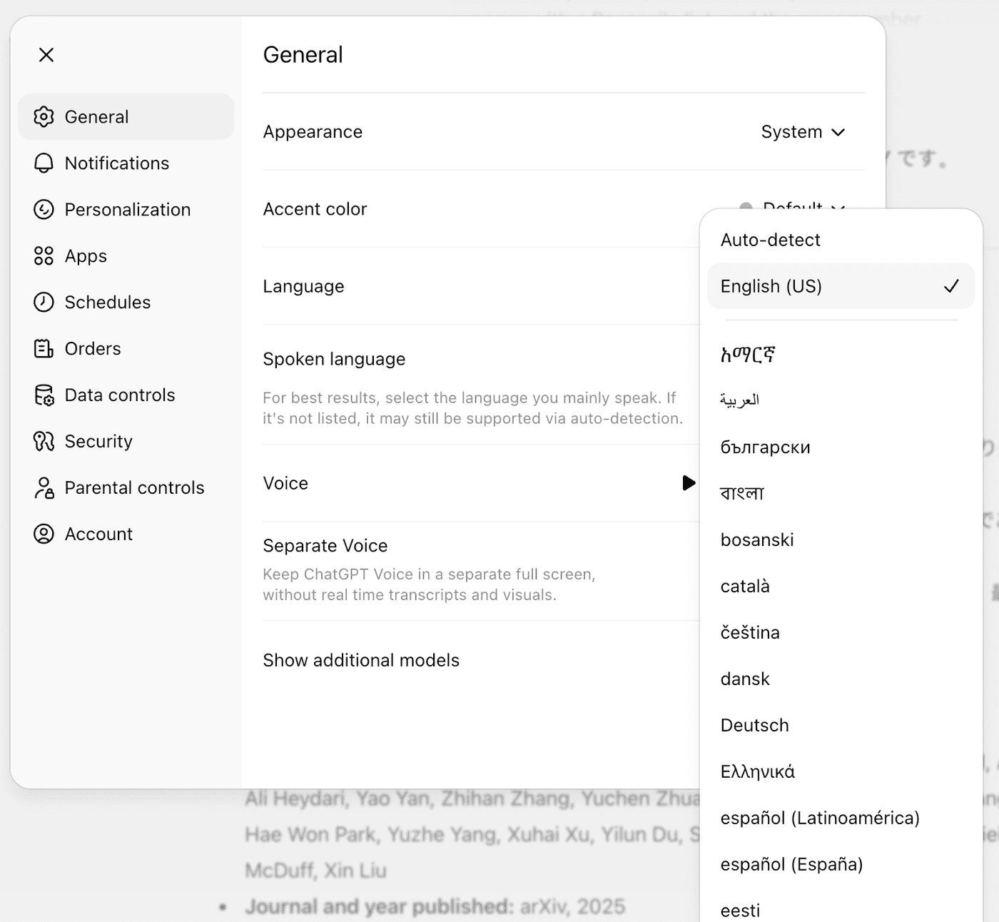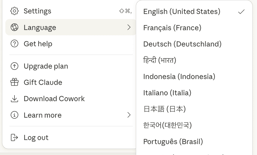 You can easily change your preferred language using the Settings panel in ChatGPT and Claude.