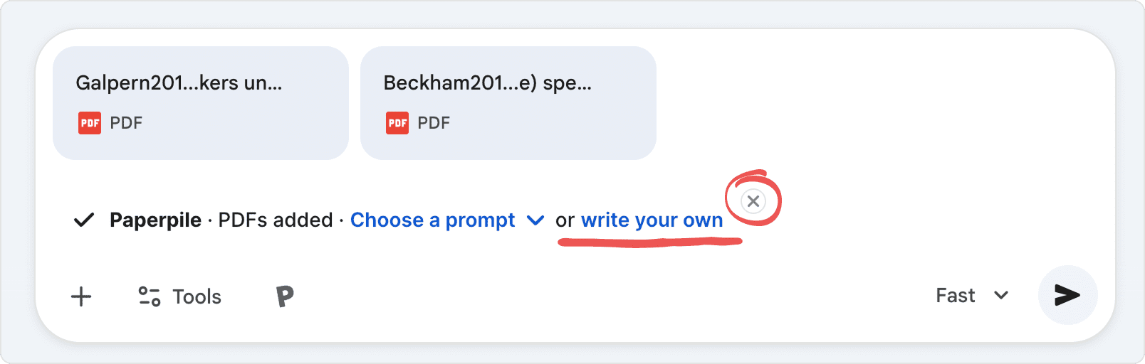 - Choose a prompt from Paperpile's library, or remove the prompt to ask your own question.