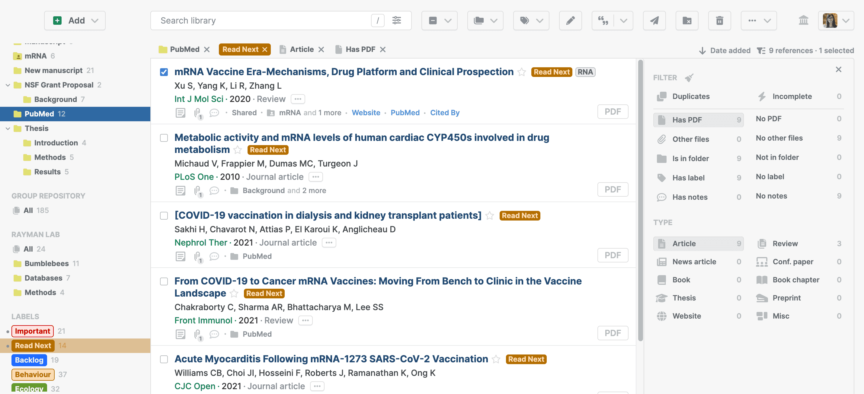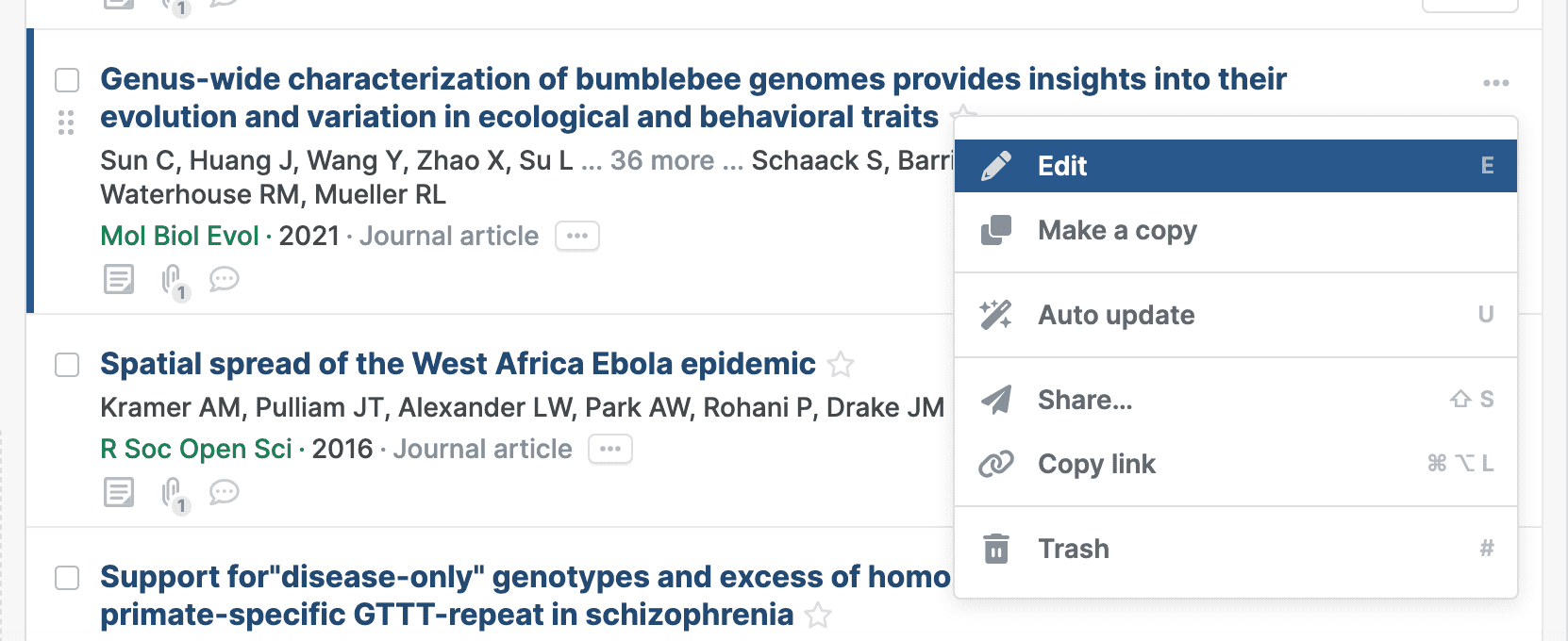 - For CVs and lists without in-text citations: The best way to go here would be grouping references under a specific folder or label in the library, then generating plain-text formatted bibliographies (select references and press Cmd/Ctrl+C) to be pasted into any document.