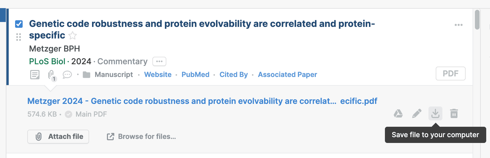 PDFs can also be downloaded individually from the Paperpile web app: