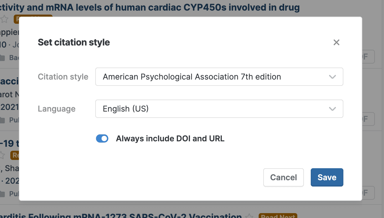 Paperpile supports the popular Citation Style Language (CSL), which has over 8,000 citation styles available at citationstyles.org. This online repository is community-based and regularly updated by volunteers.