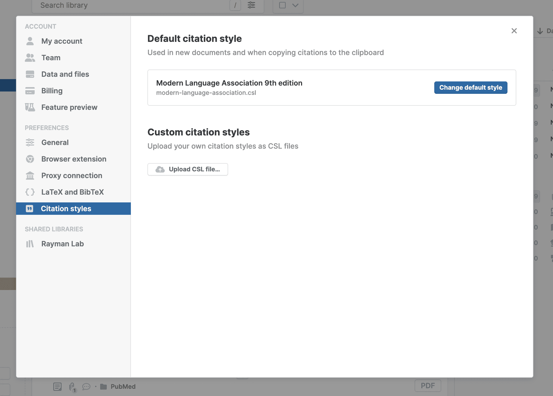This is also where you can upload custom CSL style files.