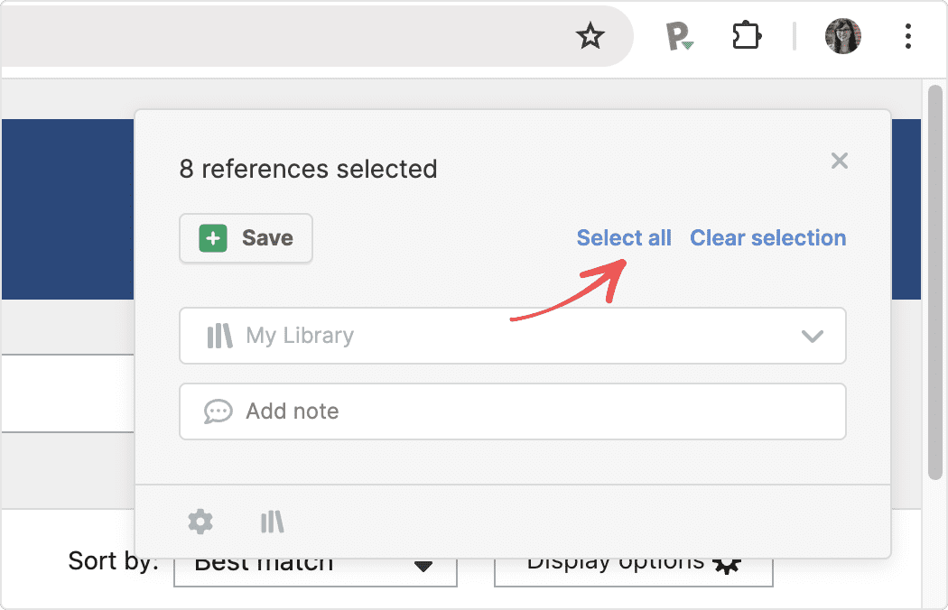 On every page you visit, you can click the Paperpile button (”P”) and select Save to Paperpile to save the reference and any associated PDF to your library.