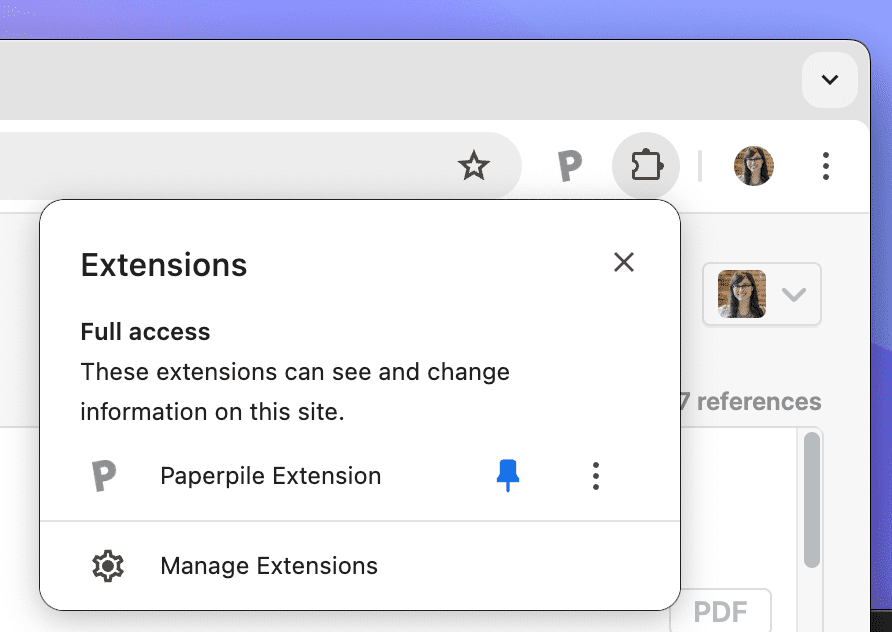 - Make sure the Paperpile extension is pinned to your Chrome toolbar.