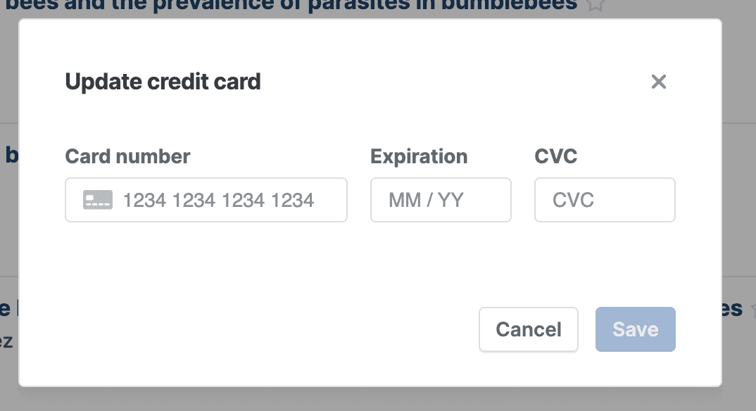 In Settings > Billing, click Update payment method and enter new credit card details.