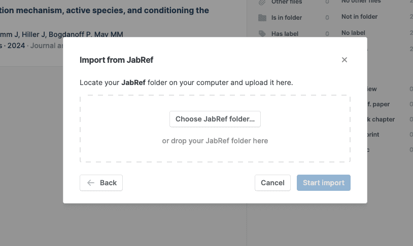 - You can create a new folder on your computer for your exported JabRef bibliography and related PDF files. Drag and drop the folder in the Choose JabRef folder… field.