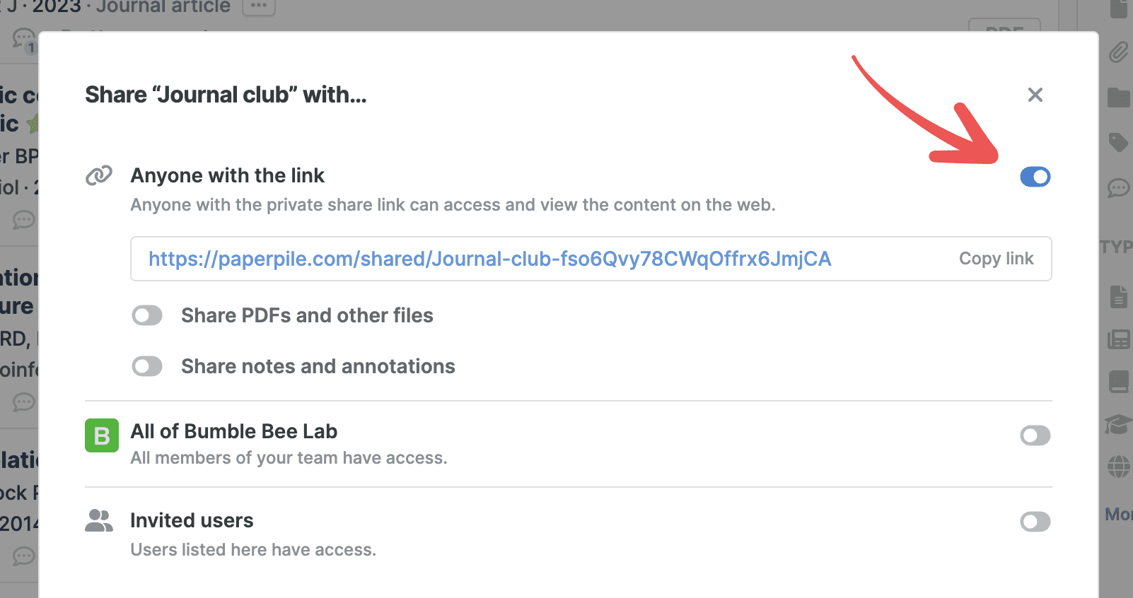 Of course, you can still share folders and libraries using shareable links in the latest version of Paperpile. However, for technical and security reasons, these links have changed, and you’ll need to re-share your folders: