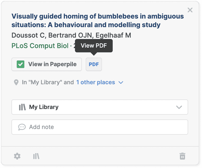 Open and read PDFs attached to your references directly from Paperpile. You can view PDFs in a new browser tab using your preferred PDF viewer.