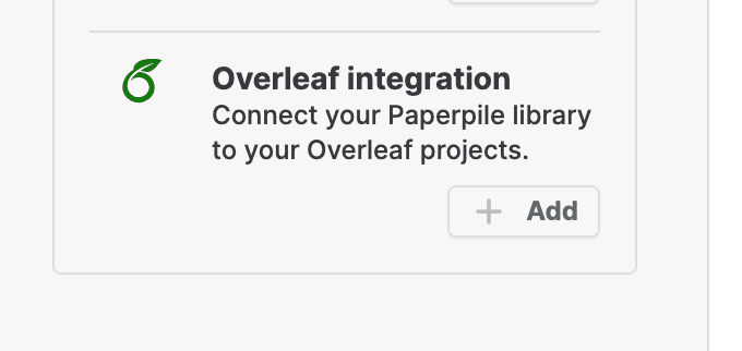 - Click the Add button of the Overleaf Integration workflow
