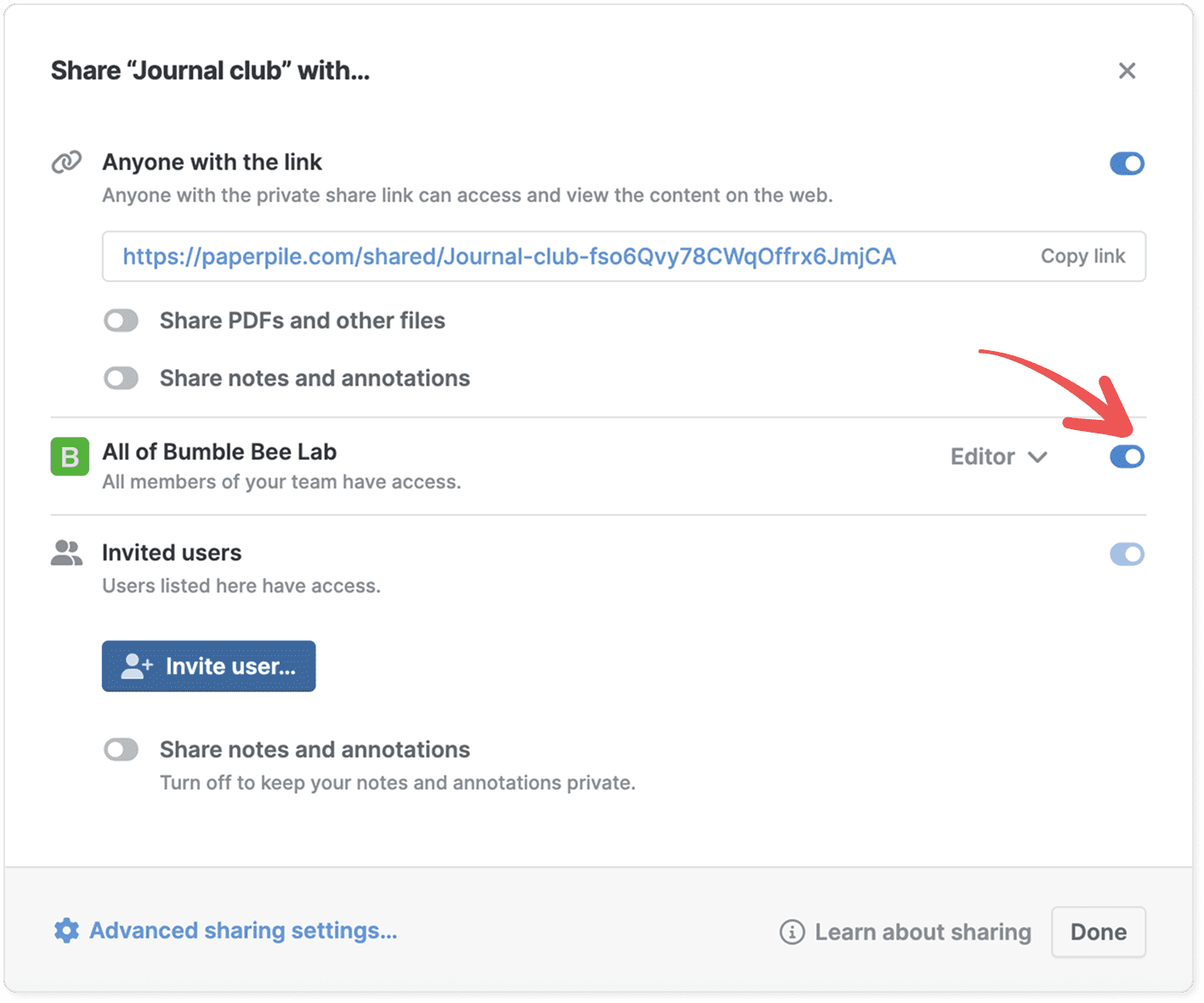 - Turn on Notify via email to send an automatic invitation. If you invite someone who doesn’t have a Paperpile account, they’ll receive an email with instructions to sign up and access your folder.