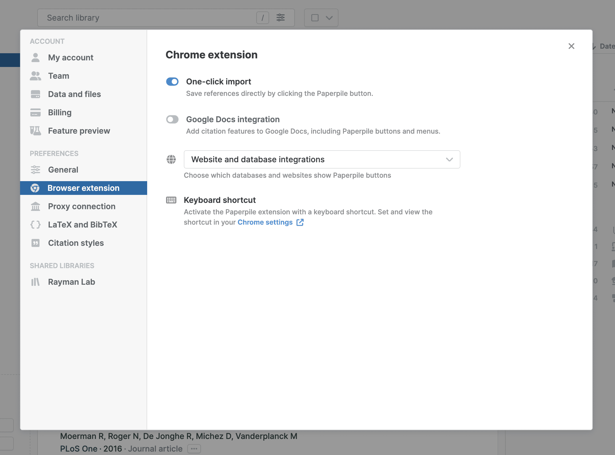 If the plugin is not loading: Make sure you are signed into Paperpile by going to app.paperpile.com, then reload the Google Docs tab. If the issue persists, try reloading the Chrome extension (check out our dedicated Chrome extension troubleshooting guide for more details) or restart the browser.