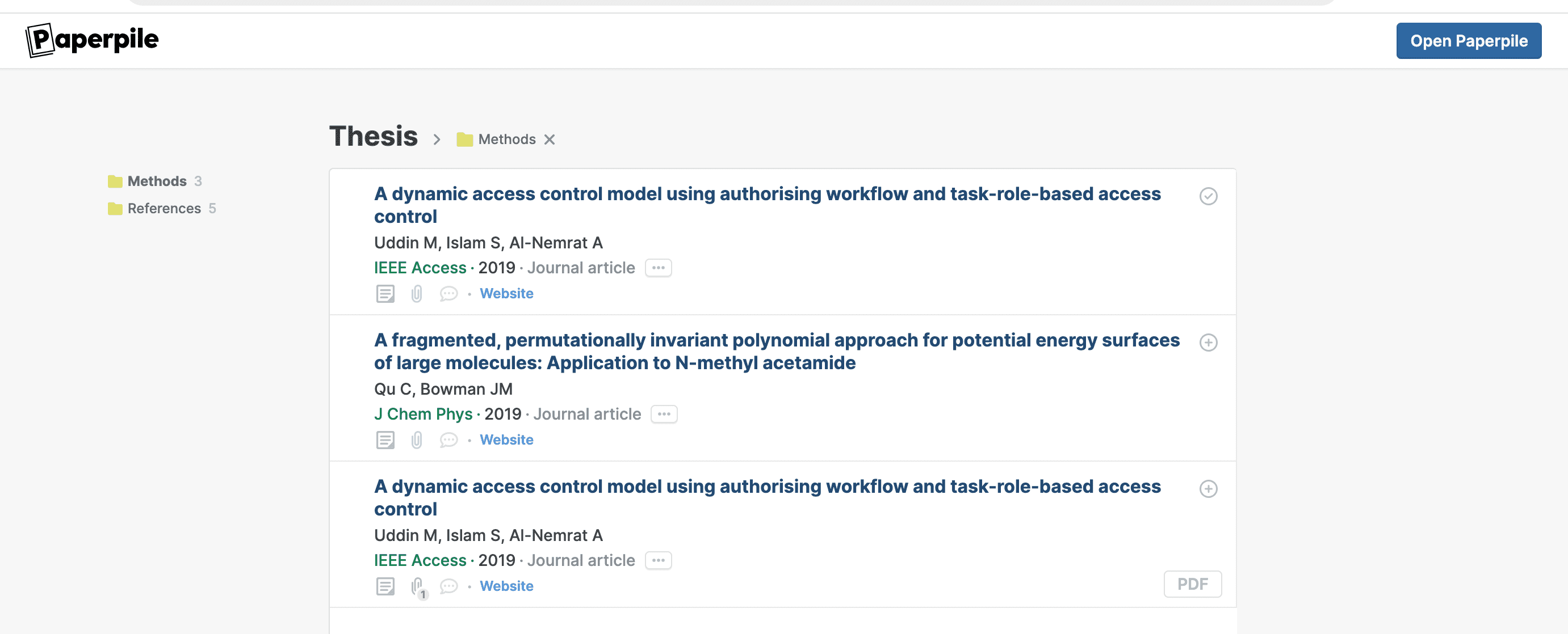 The shared reference list is a simplified version of Paperpile's main reference list. Here you can view: