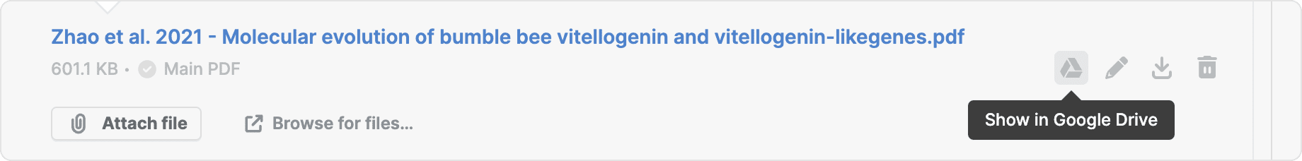 Paperpile will upload the files and add them to the reference. You can attach PDFs, images, spreadsheets, text files, and other file types you want to keep with your references. You can attach as many files to a reference as you want.