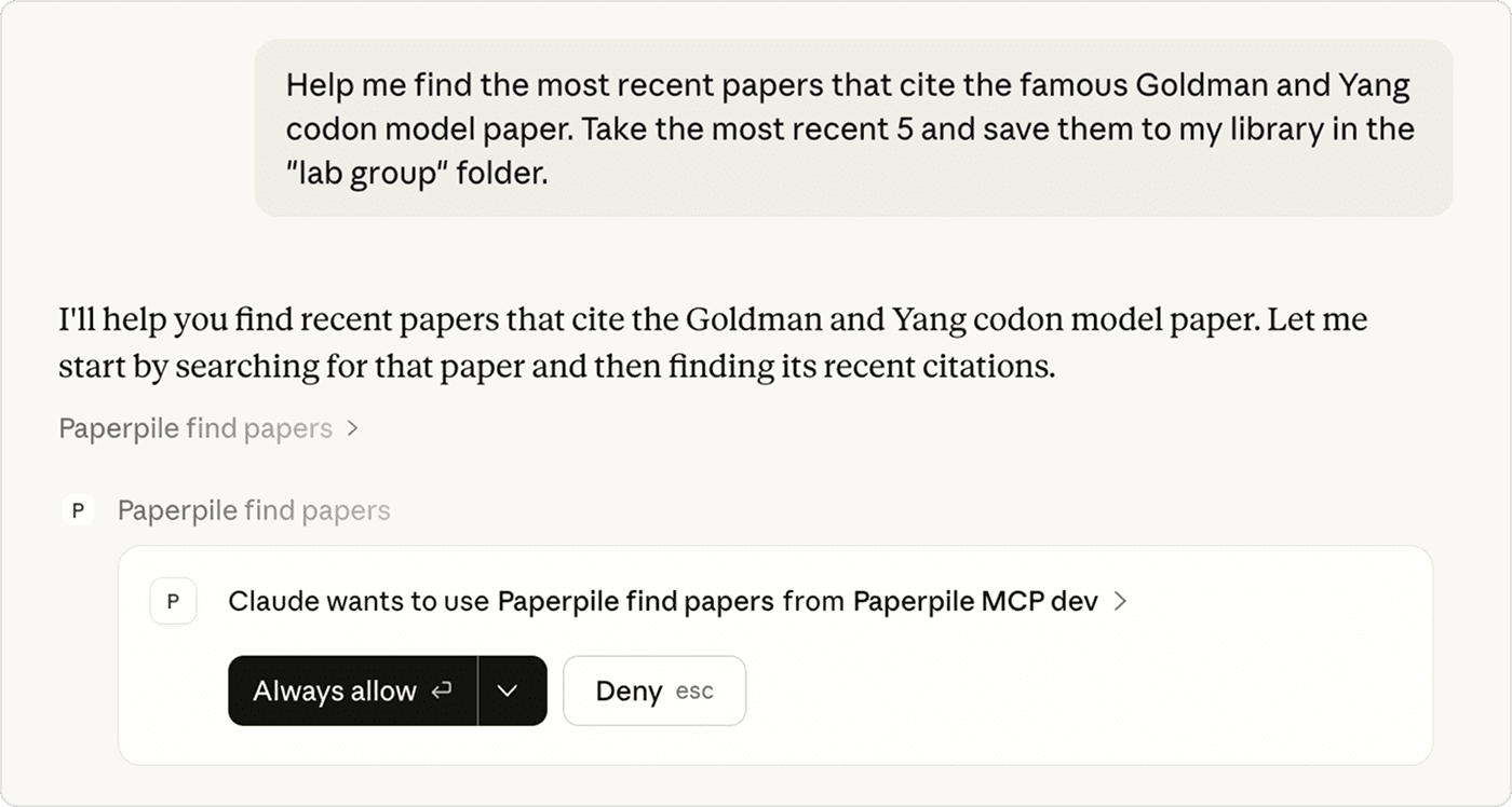 We are developing a comprehensive and secure MCP server that allows users to interact with their Paperpile library through AI assistants and agents that support MCP. This will enable natural-language access, automation, and advanced workflows powered by external AI tools while maintaining strict security and access controls.